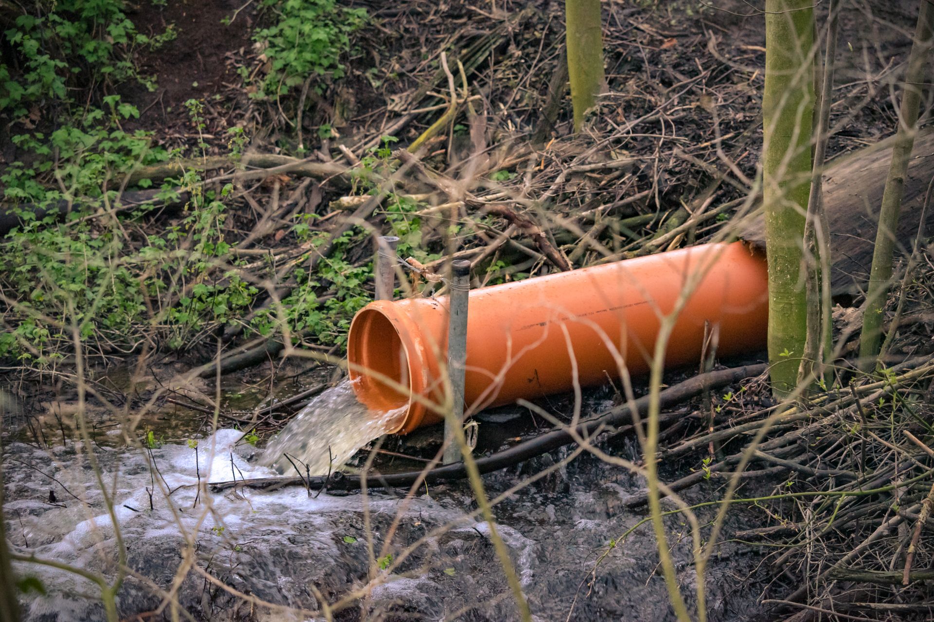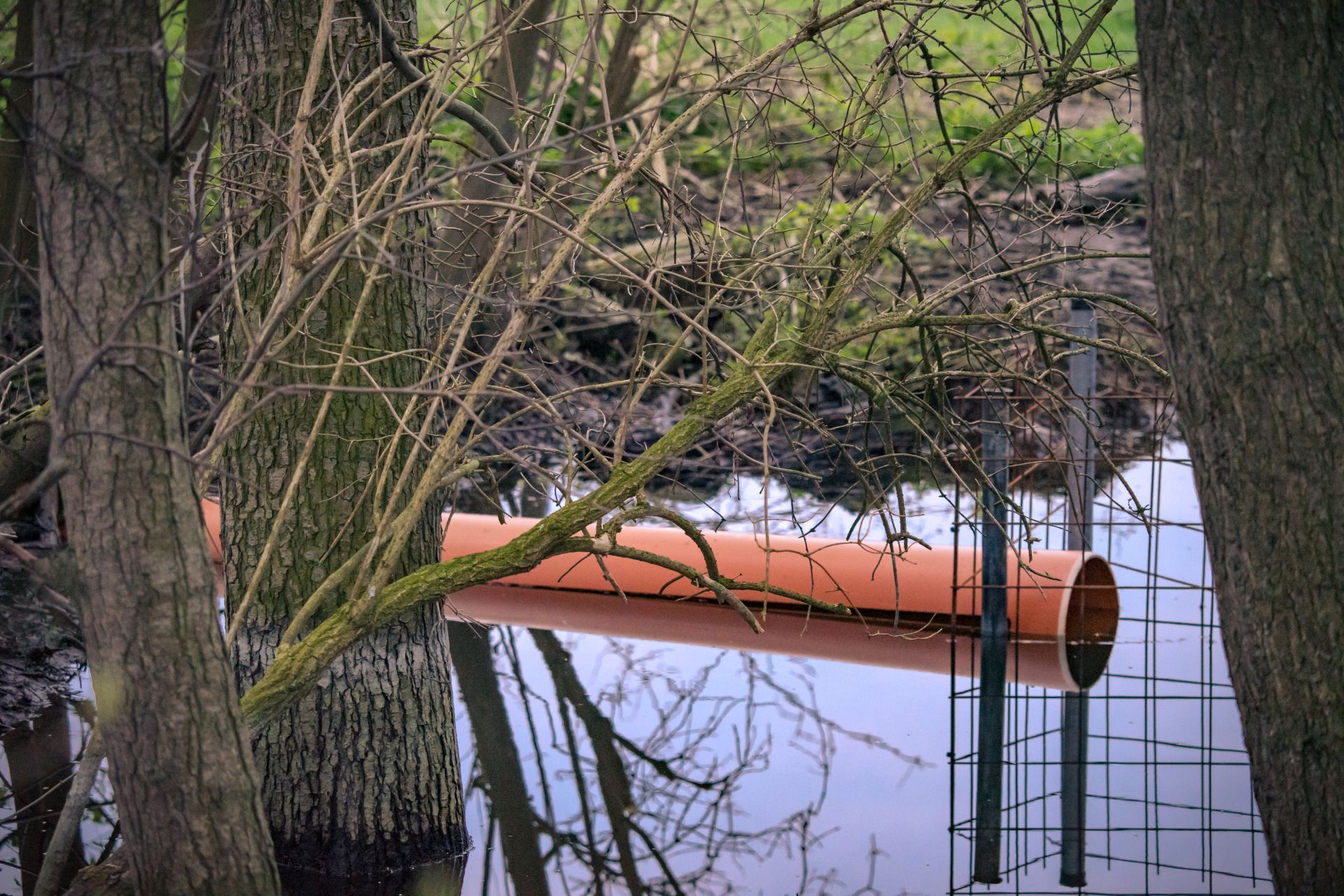 Die beiden neuen Dämme haben Bypässe bekommen. Man kann deutlich sehen, wie sich der Wasserstand dadurch verändert hat. So ist er immer noch tief genug für den Biber. Und das Wasser in dem "neuen" Koldinger Mühlenteich ist innerhalb weniger Tage mächtig zurückgegangen.